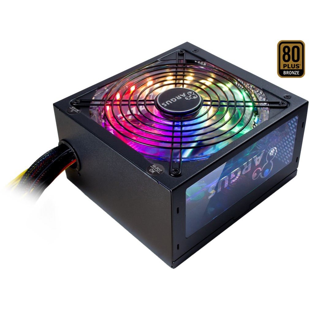 La version II révisée de l’alimentation RGB Argus 500W présente les effets lumineux impressionnants des 21 LED RGB du ventilateur silencieux de 140 mm, qui peut être contrôlé soit manuellement via un bouton, soit via la commande de la carte mère RGB 5V à 3 broches. La fenêtre latérale en verre acrylique avec le logo Argus gravé met également en valeur votre ordinateur. Certifié 80PLUS Bronze et équipé d’une correction active du facteur de puissance (PFC) et de 1x connecteurs PCI-E, l’Argus RGB-500W II est le choix parfait pour les ordinateurs de jeu ou graphiques. La finition noire durable et les câbles longs et flexibles complètent l’offre.