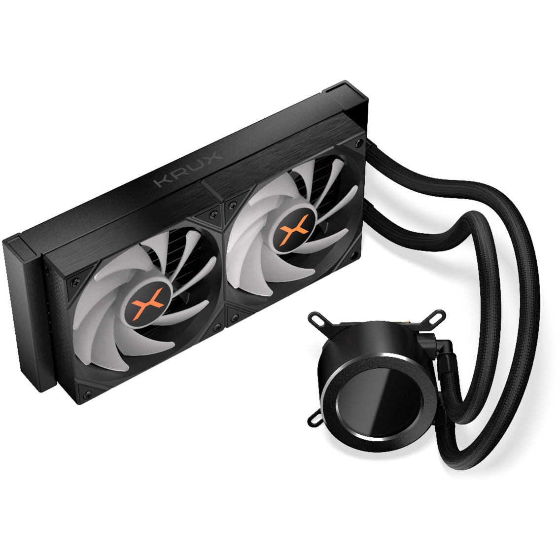 L’HydroGlance 240 LCD de Krux est un système de refroidissement liquide AiO haute performance et facile à installer, doté d’un éclairage ARGB et d’un bloc pompe doté d’un écran LCD personnalisable. La conception optimisée pour le flux d’air maintient les températures du processeur à un niveau bas, même en cas de charge lourde et dans des conditions difficiles. Le refroidissement est assuré par deux ventilateurs ARGB Krux 120 PWM préinstallés avec contrôle PWM et éclairage vif. Le cœur optique de l’HydroGlance 240 LCD est le bloc pompe, avec un écran LCD qui peut être commandé via un