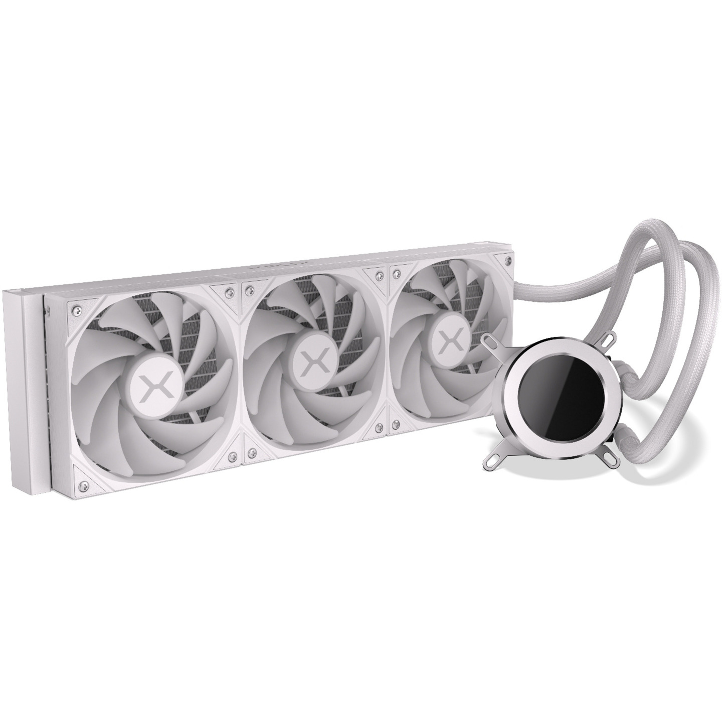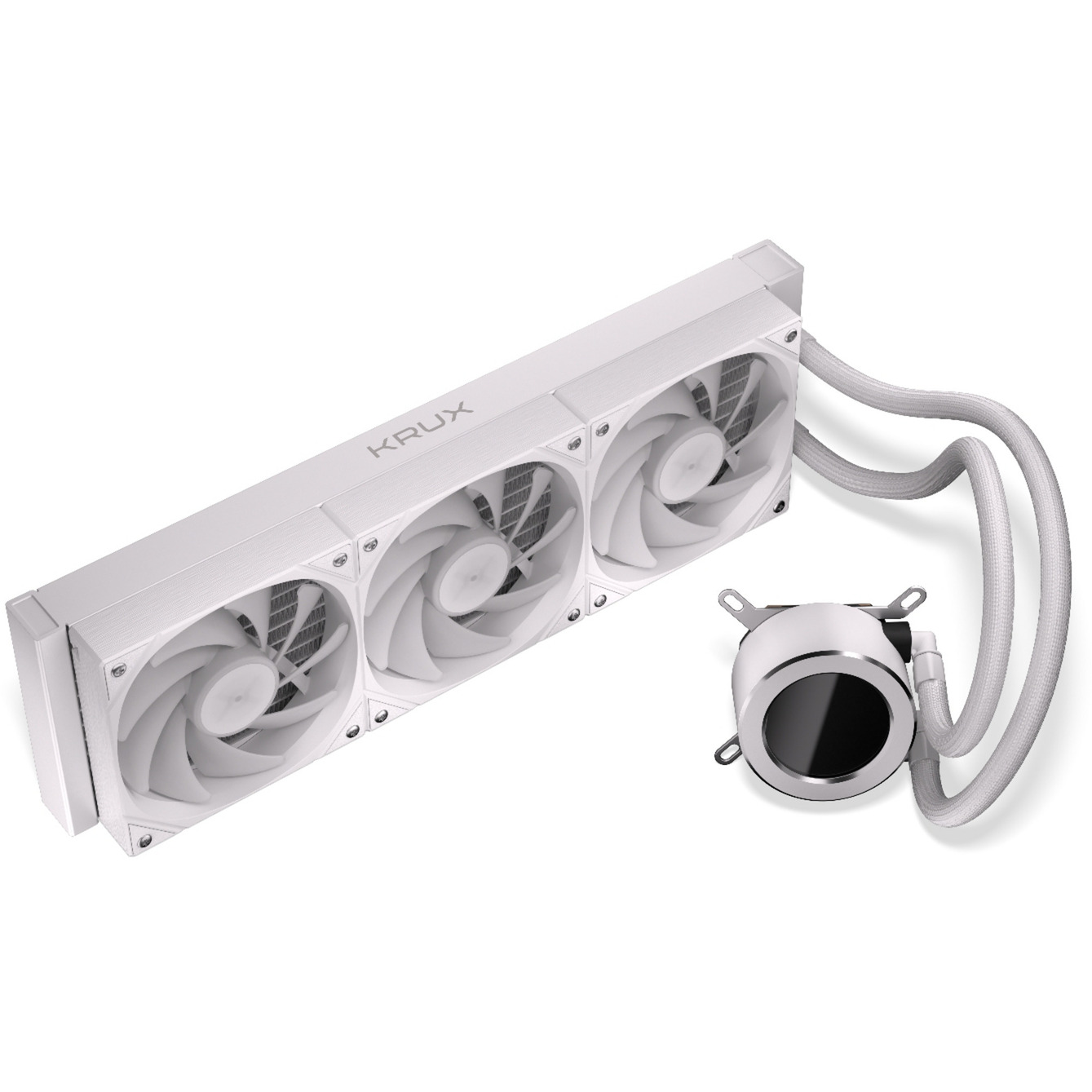 L’HydroGlance 360 LCD White de Krux est un système de refroidissement liquide AiO haute performance et facile à installer avec un éclairage ARGB et un bloc pompe avec un écran LCD personnalisable. La conception optimisée pour le flux d’air maintient les températures du processeur à un niveau bas, même en cas de charge lourde et dans des conditions difficiles. Le refroidissement est assuré par trois ventilateurs ARGB Krux 120 PWM préinstallés avec contrôle PWM et éclairage vif. Le cœur visuel de l’HydroGlance 360 LCD White est le bloc pompe, avec un écran LCD connecté via un port USB interne qui offre de nombreuses options de personnalisation. Le logiciel spécial peut être utilisé pour présenter vos propres images, vidéos et animations ou pour afficher l’heure et la date, les températures du système, les indicateurs de charge, les vitesses des ventilateurs et d’autres statistiques importantes du système. L’HydroGlance 360 LCD White permet une installation sans problème avec un kit qui comprend un ensemble complet d’accessoires de montage compatibles avec les sockets Intel et AMD populaires. Il est également livré avec un tube de pâte thermique, ce qui est suffisant pour plusieurs applications.