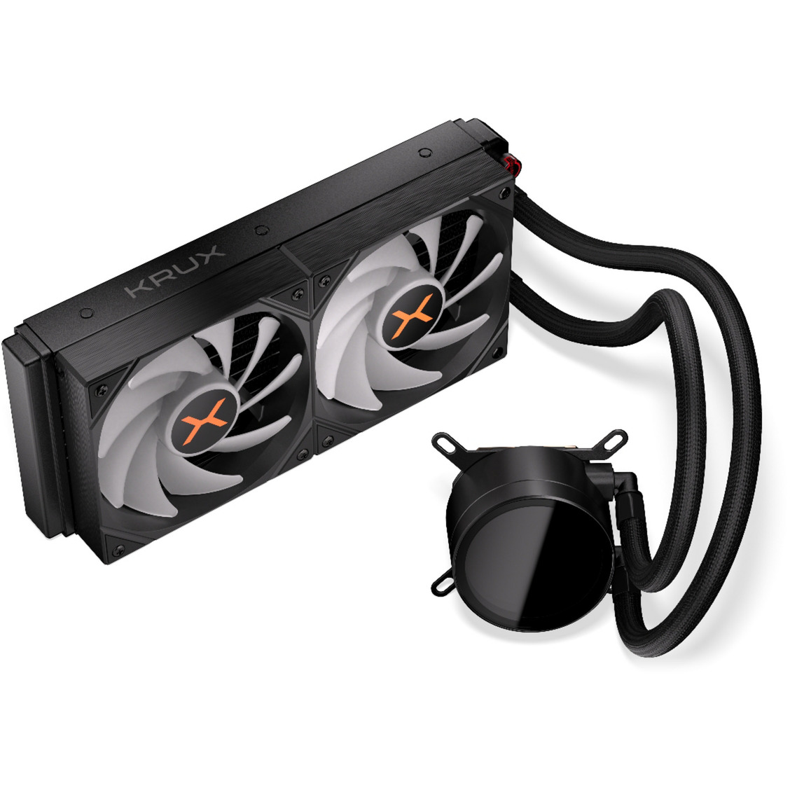 L’HydroX 240 ARGB de Krux est un système de refroidissement liquide AiO puissant et facile à installer avec un éclairage ARGB et un bloc de pompe miroir Infinity accrocheur. La conception optimisée pour le flux d’air maintient les températures du processeur à un niveau bas, même en cas de charge lourde et dans des conditions difficiles. Le refroidissement est assuré par deux ventilateurs ARGB Krux 120 PWM préinstallés avec contrôle PWM et éclairage vif. Le cœur visuel de l’HydroX 240 ARGB est le bloc pompe, avec un effet de miroir à l’infini étonnant qui, en combinaison avec l’éclairage ARGB, s’adapte parfaitement à l’esthétique du système. L’HydroX 240 ARGB prend en charge une installation sans problème avec un kit qui comprend un ensemble complet d’accessoires de montage compatibles avec les sockets Intel et AMD populaires. Il est également livré avec un tube de pâte thermique, ce qui est suffisant pour plusieurs applications.