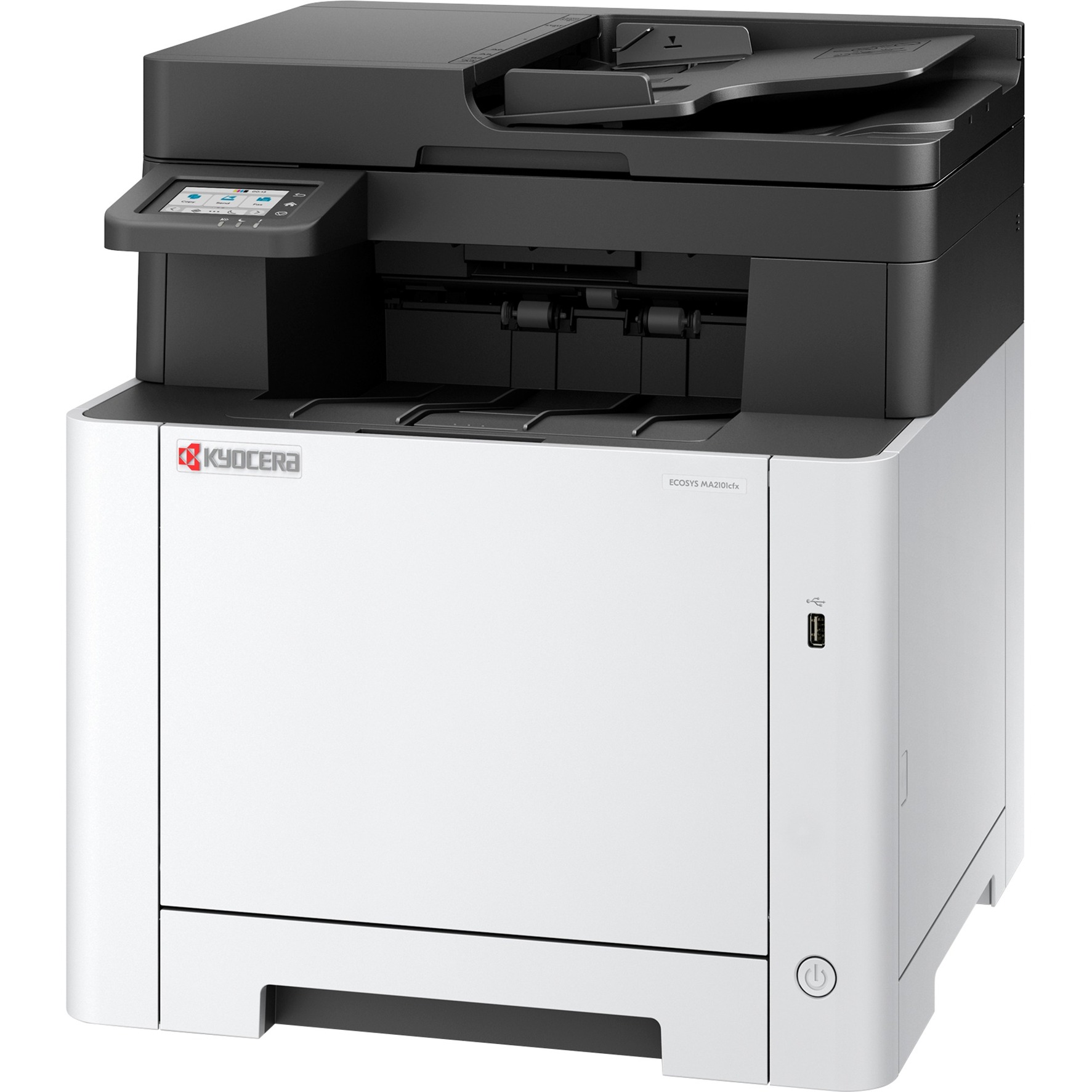 Polyvalence dans un format compact : l’ECOSYS MA2101cfx est un système multifonction laser couleur performant avec une unité d’impression pouvant atteindre 21 pages par minute. Ce système ne se contente pas de produire des impressions couleur professionnelles avec une résolution allant jusqu’à 1200 dpi, il dispose également d’une unité de fax, d’une fonction de copie et d’un scanner avec chargeur pouvant accueillir jusqu’à 50 feuilles. Le MA2101cfx peut être connecté via LAN, offre de nombreuses fonctions de sécurité et est équipé d’un bac papier d’une capacité allant jusqu’à 250 feuilles. L’ECOSYS MA2101cfx devient ainsi rapidement un partenaire puissant et efficace pour le télétravail et les petits bureaux.