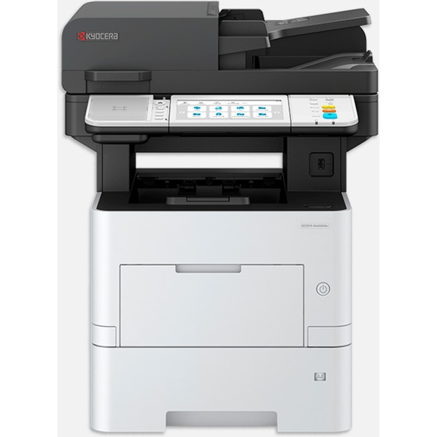 L’ECOSYS MA5500ifx offre des performances maximales dans les environnements à fort volume d’impression et aux exigences élevées en matière de qualité et de fiabilité. Cette imprimante multifonction laser noir et blanc atteint une vitesse d’impression allant jusqu’à 55 pages par minute et dispose de fonctions performantes de numérisation et de copie. Les documents originaux peuvent être numérisés via le chargeur situé sur la partie supérieure, pouvant contenir jusqu’à 100 feuilles. Ce chargeur est compatible recto verso tout comme l’imprimante et dispose d’une détection à ultrasons des doubles alimentations. Le MA5500ifx peut être connecté via LAN et prend également en charge l’impression depuis des appareils mobiles sous iOS ou Android. En plus des fonctions d’impression, de numérisation et de copie, une interface fax est également intégrée. L’utilisation s’effectue via un écran tactile inclinable situé à l’avant.