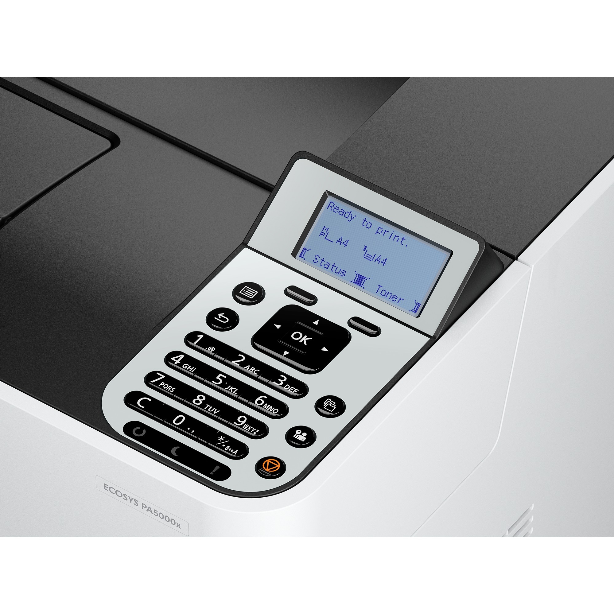 Design compact, hautes performances : l’ECOSYS PA5000x produit des impressions noir et blanc avec une résolution allant jusqu’à 1200 x 1200 dpi. Cette imprimante laser pour bureaux fonctionne de manière extrêmement efficace avec une vitesse pouvant atteindre 50 pages par minute et peut être intégrée via LAN dans des flux de travail existants. Elle dispose en outre de nombreuses fonctions de sécurité, d’une unité duplex pour l’impression recto verso et peut contenir jusqu’à 600 feuilles de papier. Grâce à des accessoires disponibles séparément, la capacité papier de ce système d’impression performant peut être étendue jusqu’à 2600 feuilles.