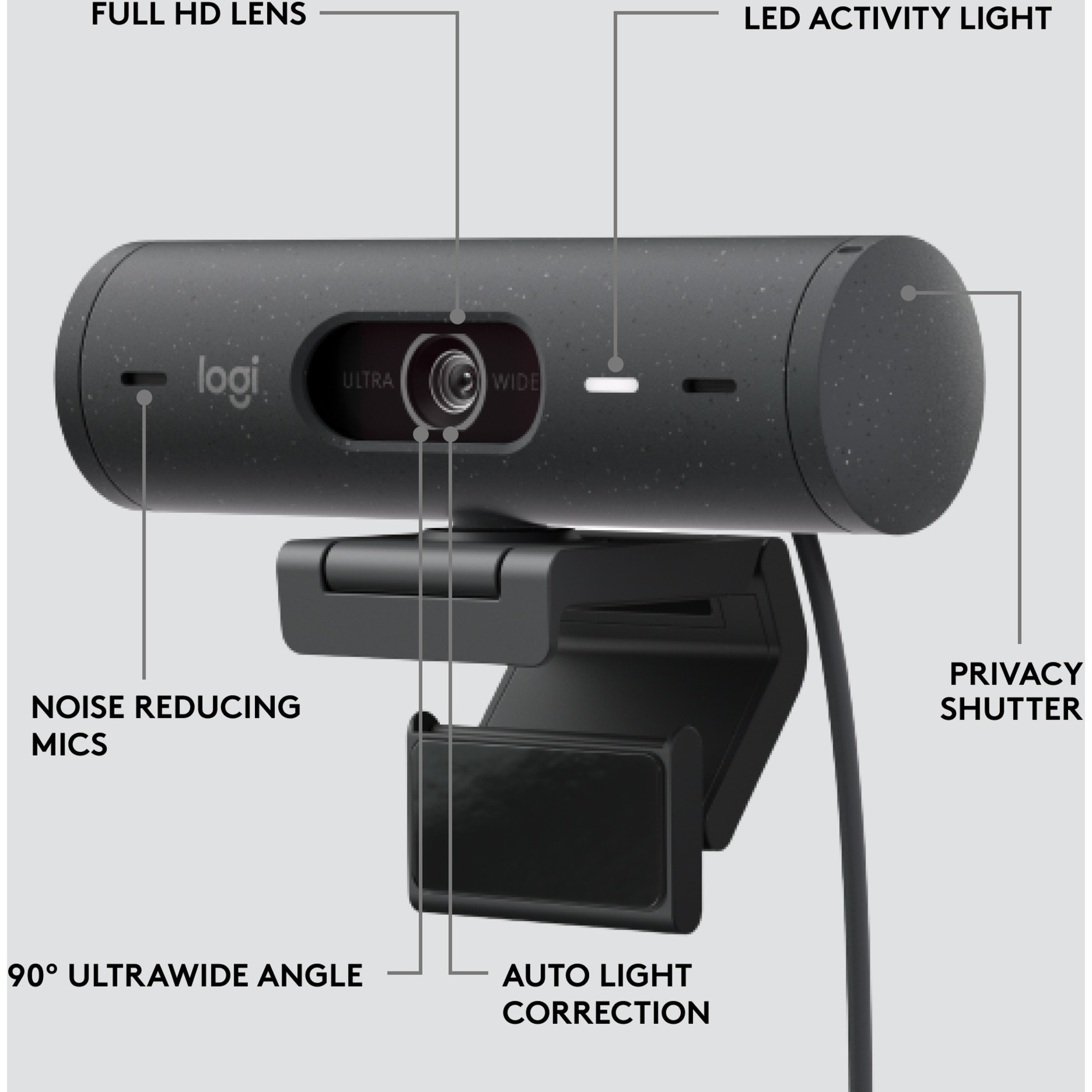 – Qualité d'image avancée: la résolution Full HD 1080p de la webcam offre une excellente qualité d'image pour que tout le monde puisse la voir clairement pendant les réunions. – Correction automatique de la lumière (RightLight 4): La technologie d'éclairage vidéo RightLIght 4 s'adapte automatiquement à l'éclairage ambiant, ce qui permet de vous voir clairement même dans des conditions de faible luminosité. – Cadrage automatique (RightSight): Le cadrage automatique centre la caméra vidéo sur vous, ce qui vous permet de vous lever et de bouger pendant les réunions sans perdre la mise au point. – Mode Afficher: Montrez votre travail ou d'autres objets sur votre bureau grâce au mode Afficher. Il vous permet d'incliner la webcam vers le haut ou vers le bas d'une seule main. – Deux microphones antibruit: entendez-vous clairement dans les environnements bruyants grâce aux microphones antibruit qui filtrent les bruits de fond pendant les conversations. – Webcam avec protection de la vie privée: Pour protéger votre vie privée entre les réunions, faites pivoter le cache de confidentialité intégré à la webcam pour bloquer complètement la caméra. – Champ de vision à 90 degrés: un champ de vision plus large que la normale offre plus d'espace pour se déplacer et pour une deuxième personne devant la caméra; utilisez Logi Tune pour effectuer un zoom avant/arrière à 90 degrés. – Logi Tune: Associez Logi Tune pour personnaliser votre caméra Web Logitech; effectuez un zoom avant ou arrière, coupez le microphone, réglez la couleur et la résolution de l'image, gérez l'image automatique et définissez des mises à jour automatiques. Microphone stéréo: microphone stéréo, Windows Hello , Microphone stéréo