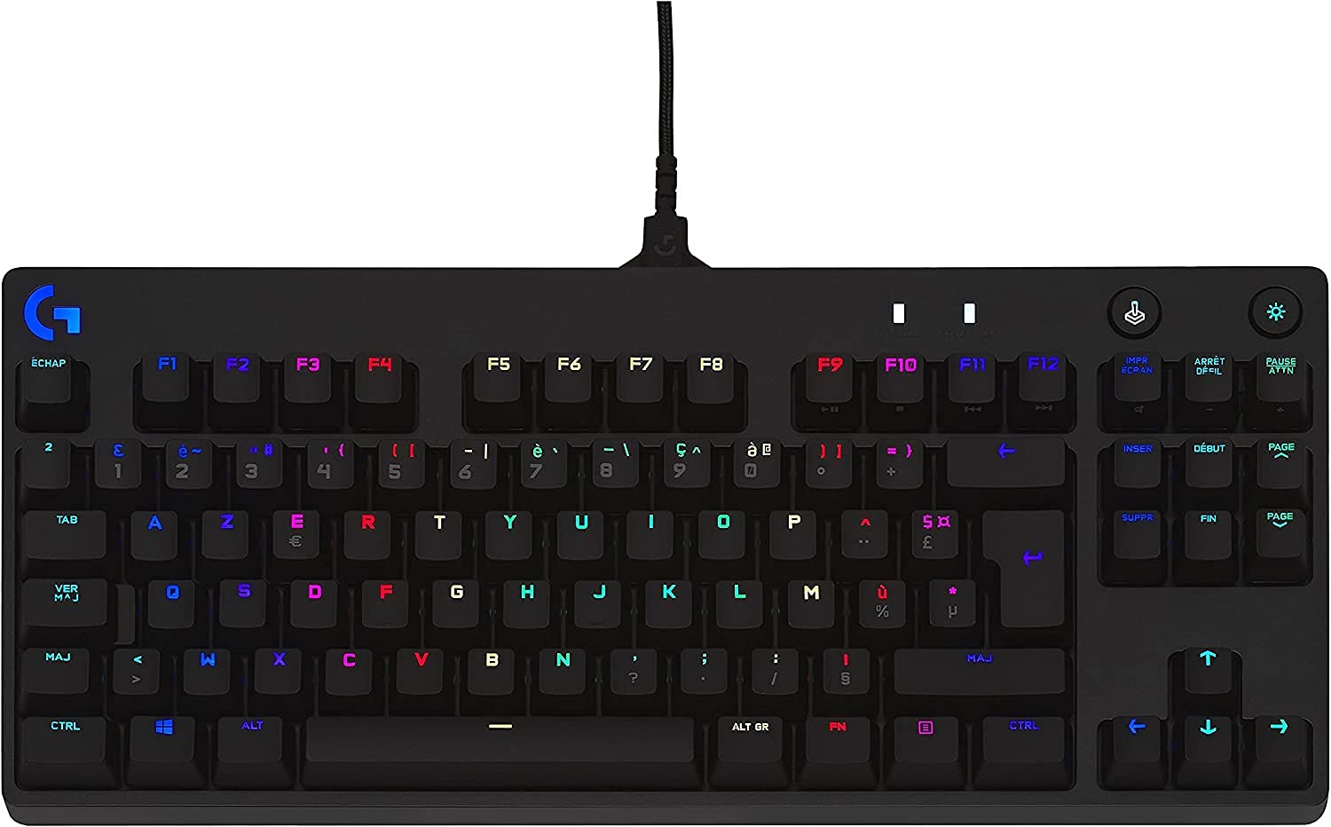 L’ergonomie est soignée avec des pieds réglables permettant trois angles d’inclinaison (0°, 4° ou 8°), assurant votre confort sur la durée. Côté personnalisation, la technologie LIGHTSYNC permet de piloter un rétroéclairage RGB de 16,8 millions de couleurs. Vous pouvez également programmer les touches de F1 à F12 via le logiciel dédié et sauvegarder un profil d’éclairage directement dans la mémoire intégrée du clavier.