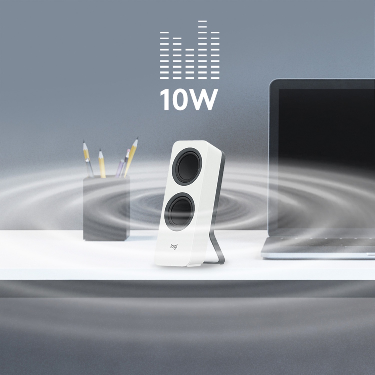Les haut-parleurs Logitech Z207 se présentent comme une solution audio polyvalente et élégante pour votre espace de travail. Avec une largeur de 90 mm, une hauteur de 241 mm et une profondeur de 124 mm, ces enceintes blanches s’intègrent facilement sur n’importe quel bureau sans l’encombrer. Elles délivrent une puissance musicale totale de 10 Watt, avec 5 Watt RMS par enceinte, offrant un rendu sonore équilibré pour vos besoins multimédias quotidiens.