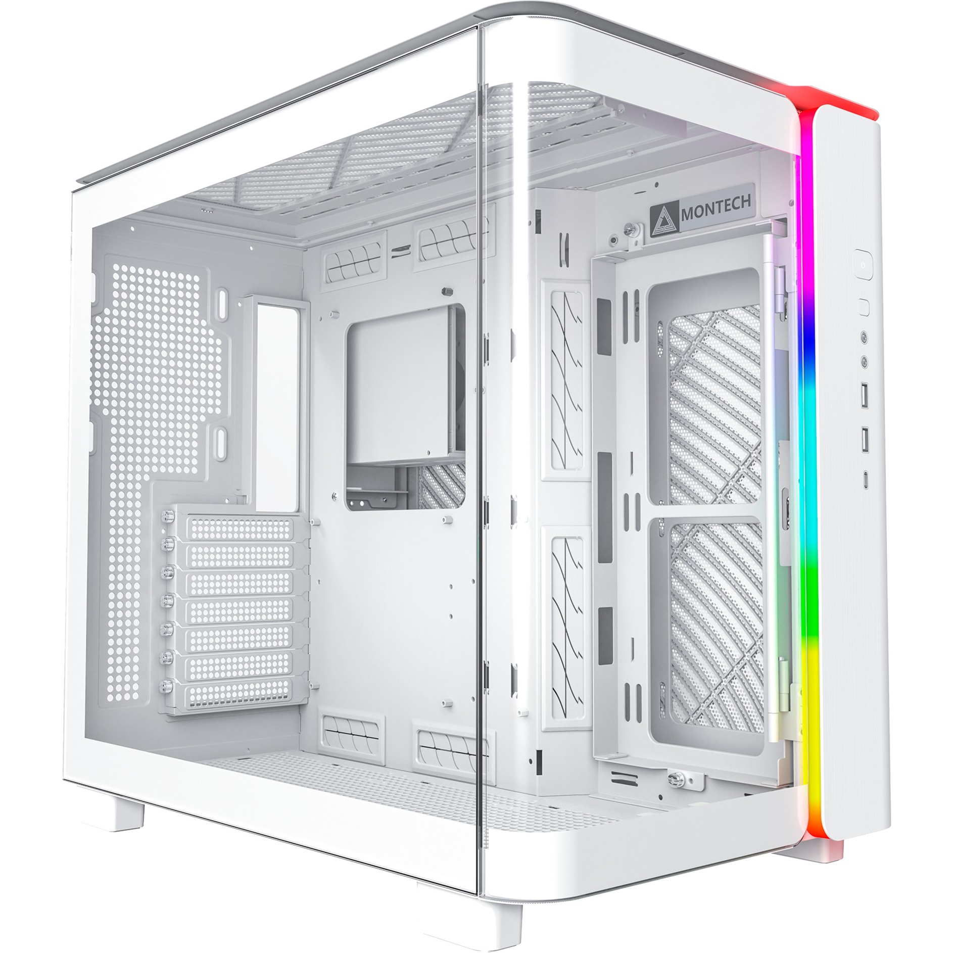 Le boîtier Montech KING 95 s’impose comme une solution de choix pour les configurations haut de gamme exigeant à la fois esthétique et robustesse. Sa conception en acier et verre trempé de 4 mm d’épaisseur lui confère une résistance exceptionnelle aux chocs et aux rayures. Ce modèle au format Midi tower se distingue par sa face avant maillée et sa bande lumineuse intégrée, offrant un rendu visuel moderne complété par un éclairage RGB adressable compatible avec les standards majeurs du marché comme AURA Sync ou Mystic Light.
