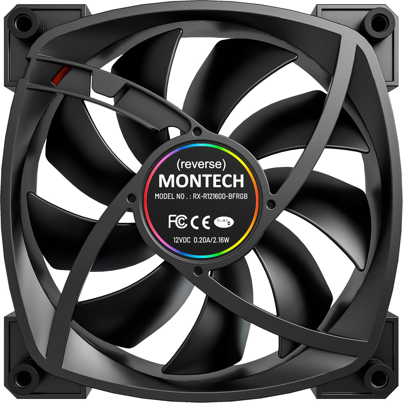 Le Montech RX120 PWM 120x120x25 se présente comme un ventilateur polyvalent, compatible avec les boîtiers, radiateurs et ventilateurs de radiateur. Son design à pales spécifiques vise à stabiliser le flux d’air pour améliorer la dissipation thermique, une promesse intéressante pour les configurations nécessitant un refroidissement efficace.