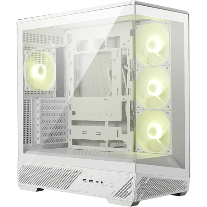Le MSI MAG PANO 130R PZ s’impose comme une solution de choix pour les utilisateurs à la recherche d’une esthétique raffinée et d’une visibilité totale sur leurs composants. Ce boîtier au format tour moyenne, conçu en acier robuste et verre trempé, affiche un volume généreux de 52 l. Sa conception panoramique en blanc élégant est sublimée par sa compatibilité avec les cartes mères à connectique arrière, permettant de dissimuler presque intégralement le câblage pour un rendu visuel d’une propreté exemplaire.