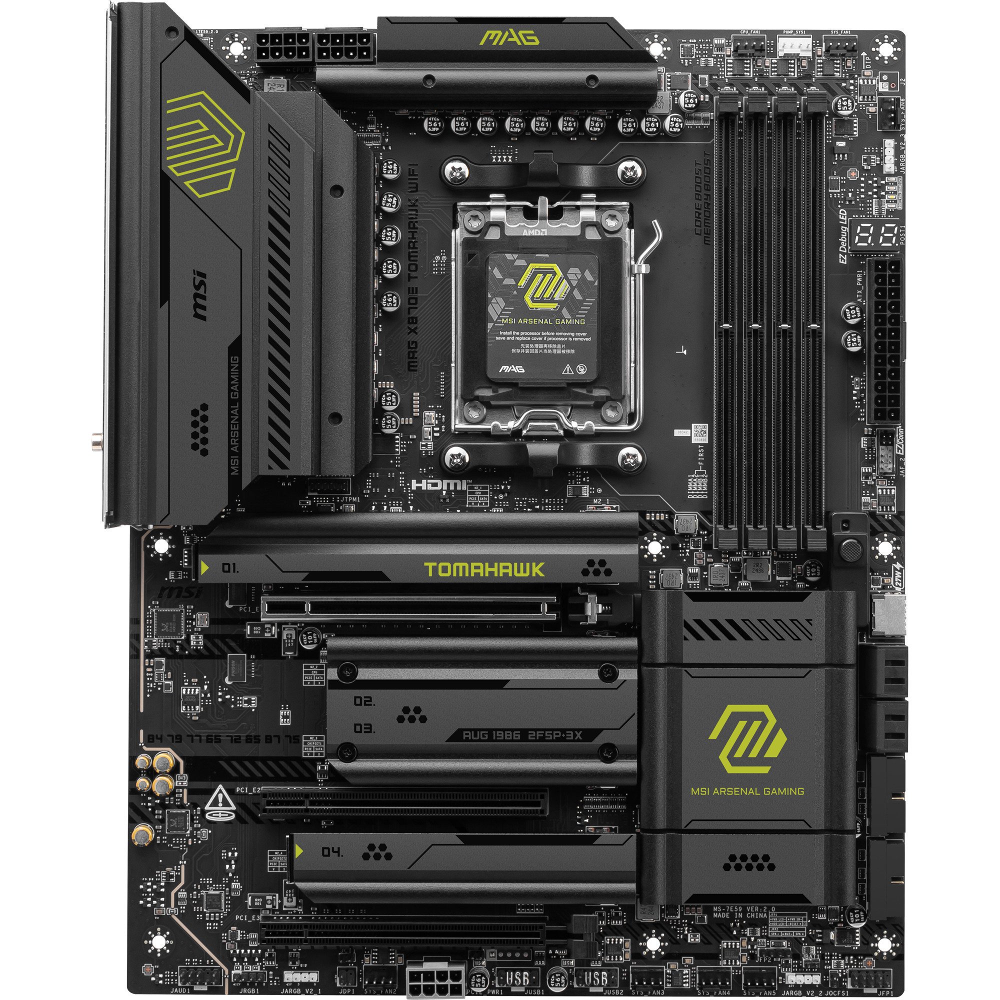 La carte mère MSI MAG X870E TOMAHAWK WIFI est basée sur le chipset AMD X870E et supporte les processeurs AMD avec un socket AM5. Cette carte mère dispose de quatre emplacements DIMM DDR5 à double canal pouvant accueillir jusqu’à 256 Go de mémoire vive. Les autres caractéristiques comprennent un emplacement PCIe 5.0 x16, un emplacement PCIe 4.0 x16 et un emplacement PCIe 3.0 x1. En outre, la MSI MAG X870E TOMAHAWK WIFI dispose d’un son à 8 canaux, d’une interface LAN à 5 gigabits, du Wi-Fi 7, du Bluetooth 5.4, de quatre ports SATA3, de quatre ports M.2, de quatre ports USB-A 2.0, de trois ports USB-A 3.2 (5 Gbit/s), de deux ports USB-A 3.2 (10 Gbit/s), de deux interfaces USB 4 et d’une interface USB-C 3.2 (10 Gbit/s).