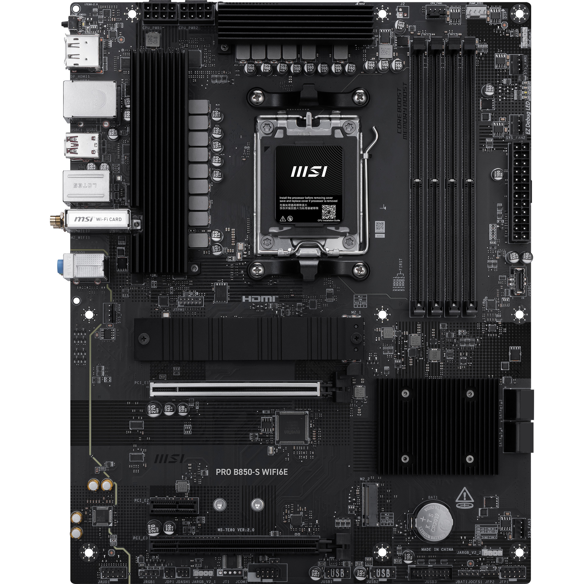 La carte mère MSI PRO B850-S WIFI6E constitue une base solide et évolutive pour votre configuration architecturée autour du socket AM5. Ce modèle au format ATX, affichant des dimensions de 244 mm par 305 mm, assure une compatibilité étendue avec les processeurs AMD les plus récents, incluant les gammes Ryzen 5, 7 et 9 des séries 7000, 8000 et les modèles Granite Ridge de la série 9000.