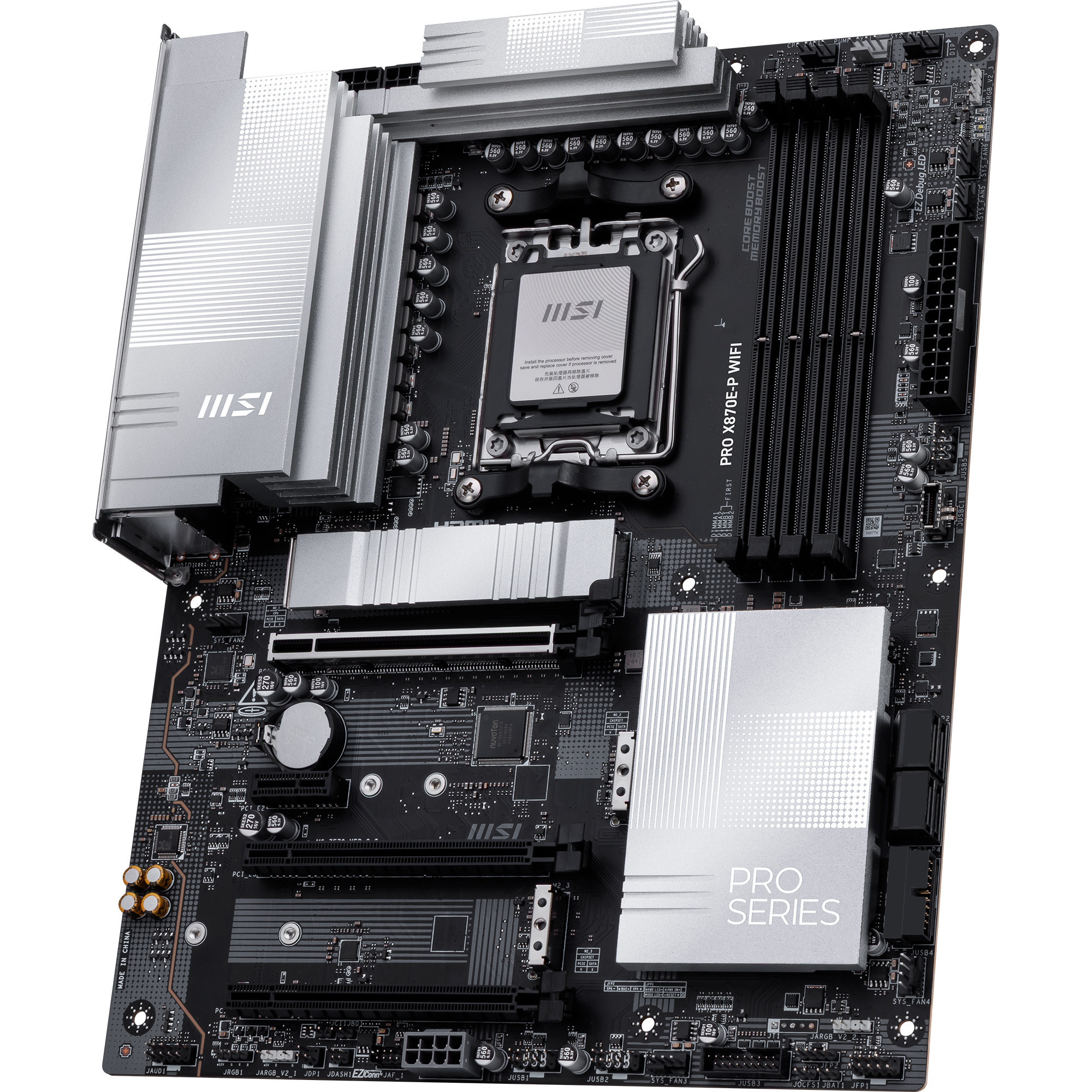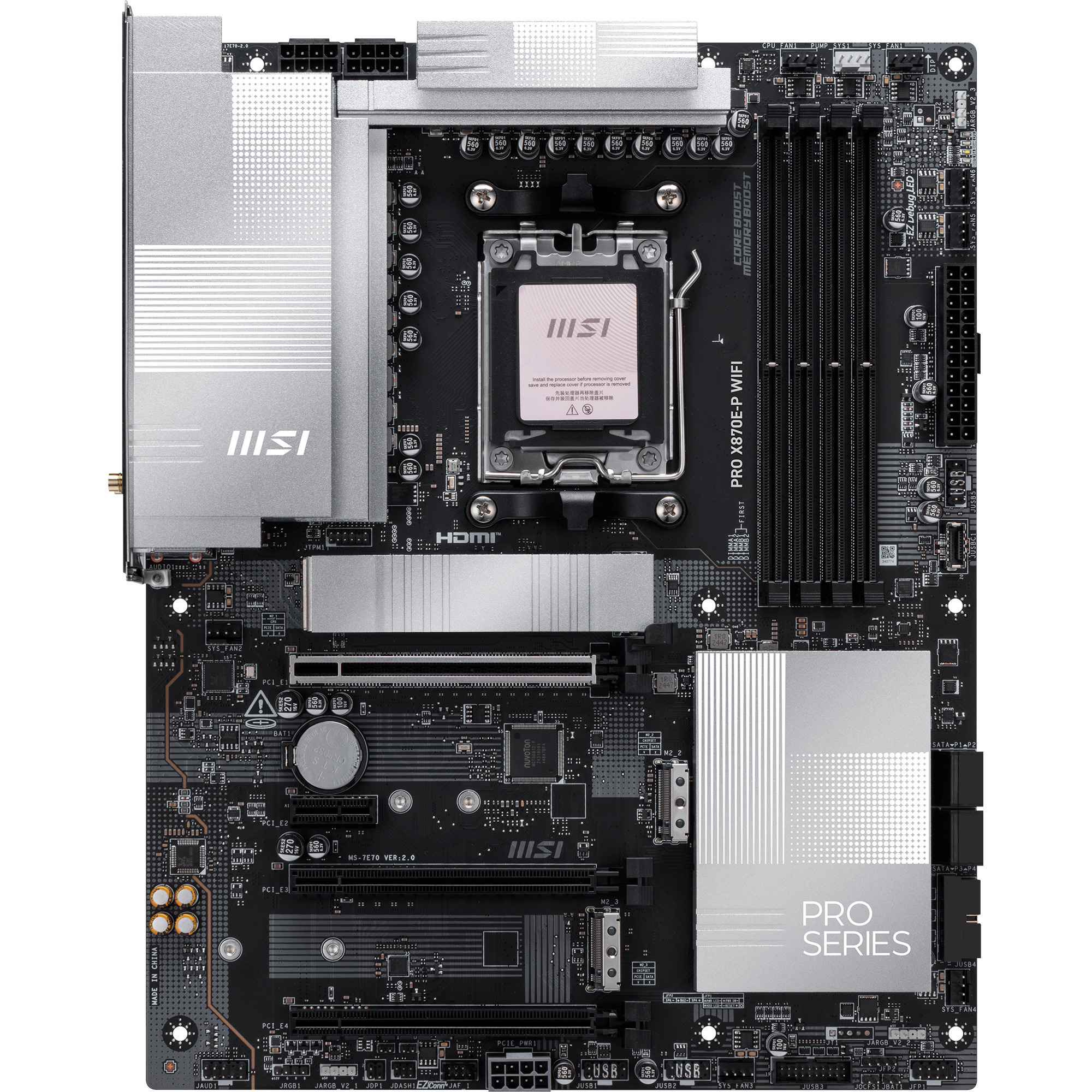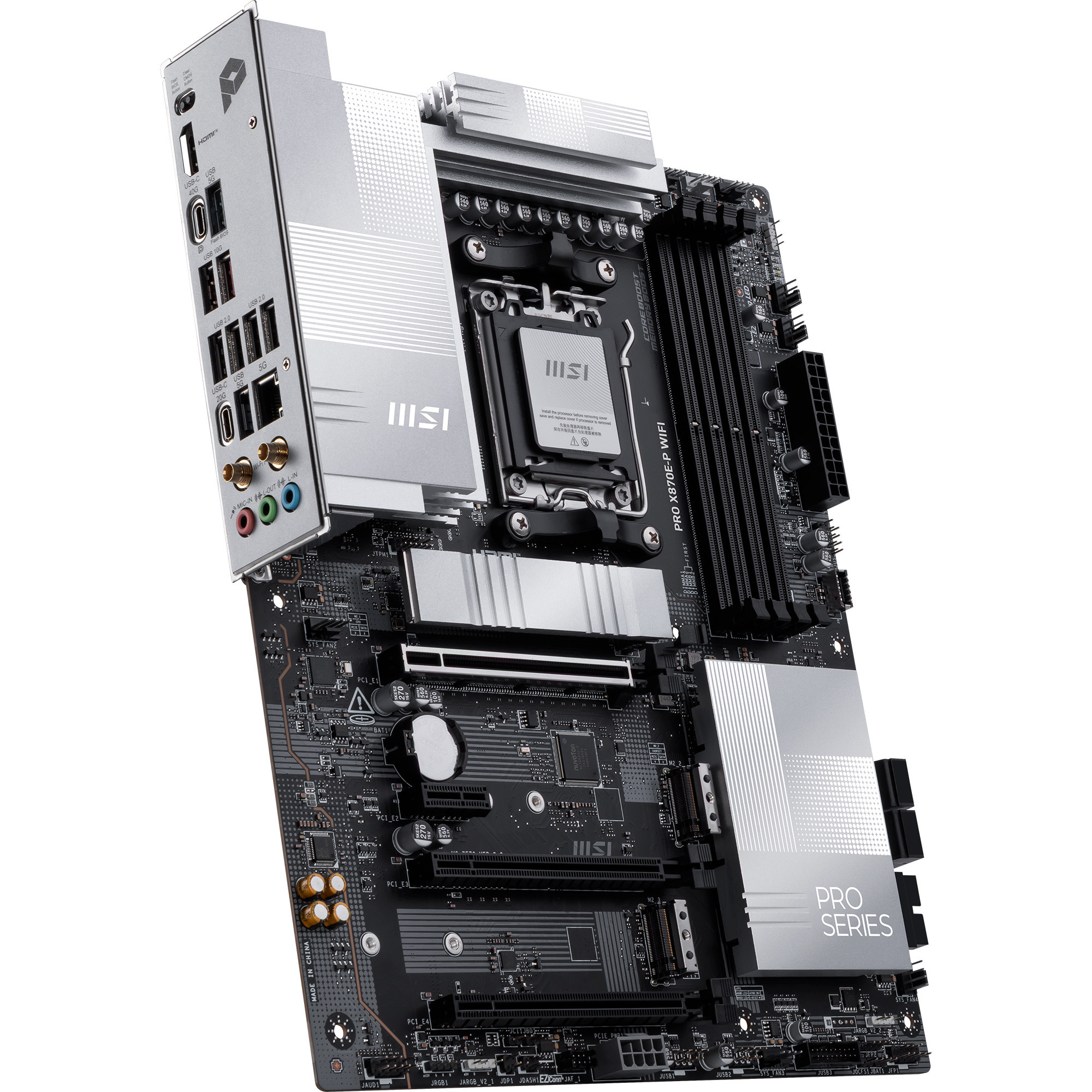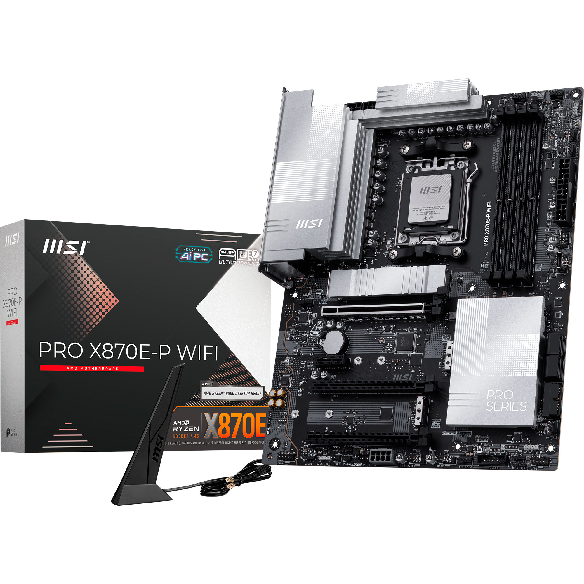 La carte mère MSI PRO X870E-P WIFI s’impose comme une solution de pointe pour les utilisateurs exigeants souhaitant exploiter la pleine puissance de l’écosystème AMD. Basée sur le chipset haut de gamme AMD X870E et le socket AM5, elle assure une compatibilité étendue avec les processeurs Ryzen des séries 7000, 8000 et les récents 9000. Son format ATX standard de 243,84 mm par 304,8 mm permet une intégration aisée dans la plupart des boîtiers tout en offrant une connectivité robuste.