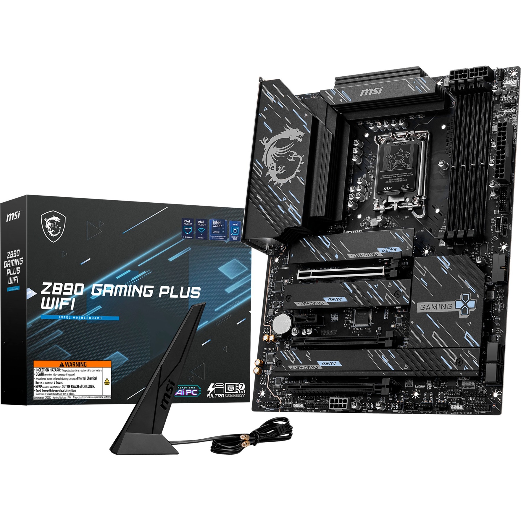 La carte mère MSI Z890 GAMING PLUS WIFI est basée sur le chipset Intel® Z890 et prend en charge les processeurs Intel® sur le socket 1851. Elle dispose de quatre emplacements DDR5 pouvant accueillir jusqu’à 256 Go de mémoire vive. La carte mère MSI Z890 GAMING PLUS WIFI est également équipée d’un emplacement PCIe 5.0 x16, de deux emplacements PCIe 4.0 x16 et d’un emplacement PCIe 4.0 x1. La MSI Z890 GAMING PLUS WIFI dispose également d’un son à 8 canaux, d’une interface LAN à 5 gigabits, du Wi-Fi 7, du Bluetooth 5.4, de quatre ports SATA3, de quatre ports M.2, de quatre interfaces USB-A 2.0, de quatre interfaces USB-A 3.2 (5 Gbit/s), d’une interface USB-A 3.2 (10 Gbit/s) et d’une interface USB-C 3.2 (10 Gbit/s).