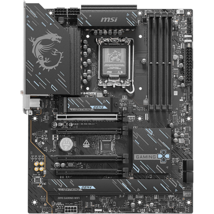 La MSI Z890 GAMING WIFI est basée sur le chipset Intel® Z890 et prend en charge les processeurs Intel® pour socket 1851. Elle dispose de quatre emplacements DDR5 pour une mémoire RAM maximale de 256 Go. La MSI Z890 GAMING WIFI est également équipée d’un emplacement PCIe 5.0 x16, d’un emplacement PCIe 4.0 x16 (x4 voies), d’un emplacement PCIe 5.0 x16 (x1 voie) et d’un emplacement PCIe 3.0 x16 (x1 voie). De plus, la MSI Z890 GAMING WIFI dispose d’un son 8 canaux, d’une interface LAN 2,5 gigabits, du WiFi 7, du Bluetooth 5.4, de quatre connecteurs SATA3, de trois connecteurs M.2 et d’une série d’interfaces USB.