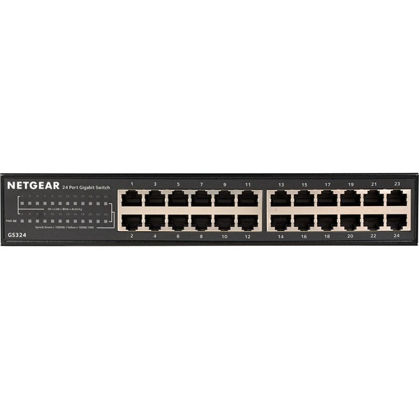 Le Netgear GS324 Non-géré Gigabit Ethernet (10/100/1000) Noir est une solution de connectivité réseau performante conçue pour répondre aux besoins de vos environnements domestiques ou de vos petits bureaux. Ce commutateur non-géré se distingue par sa simplicité d utilisation avec une approche plug-and-play, vous permettant d étendre instantanément votre infrastructure sans configuration complexe. Il dispose de 24 ports RJ-45 supportant des débits de 10/100/1000 MBit/s.