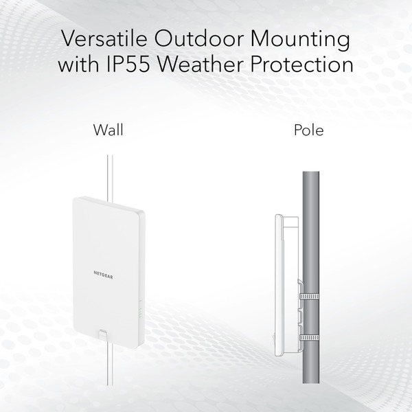Le point d’accès Wi-Fi NETGEAR WAX610Y est un point d’accès 802.11ax bi-bande haute performance, prenant en charge un débit agrégé allant jusqu’à 1,8 Gbit/s (600 Mbit/s pour 2,4 GHz et 1,2 Gbit/s pour 5 GHz). Le point d’accès WAX610Y peut fonctionner en plusieurs modes et prend en charge, en plus du mode Point d’accès, les modes Routeur, Répéteur ou Pont. Il est idéal pour les utilisateurs qui recherchent un débit élevé, des performances absolument exceptionnelles et une couverture Wi-Fi étendue, notamment pour les petites et moyennes entreprises, les établissements d’enseignement, ainsi que l’hôtellerie et la restauration.