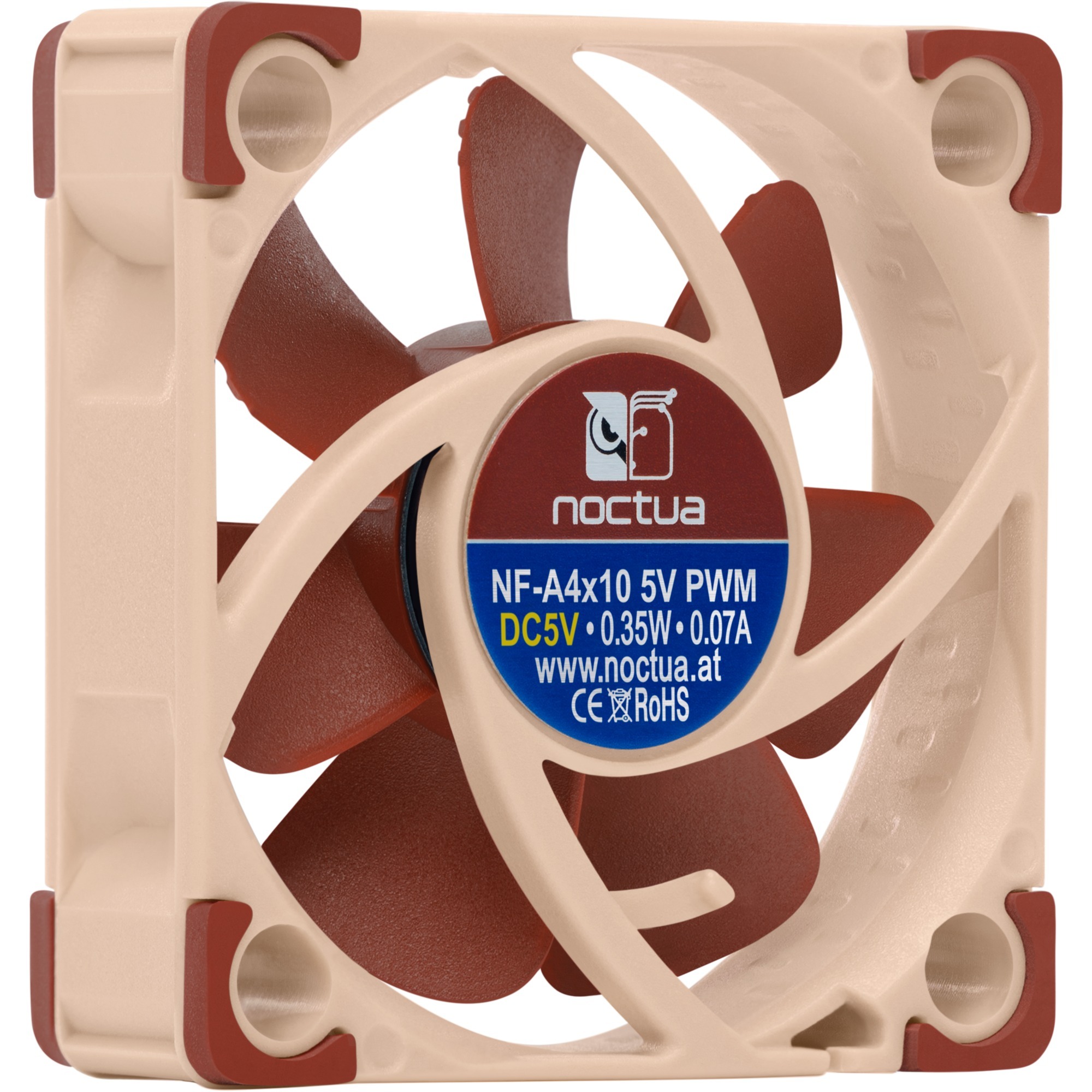 Le NF-A4x10 5V PWM est un ventilateur silencieux primé de 40 mm destiné au boîtier de votre ordinateur. Le ventilateur fournit un bon refroidissement grâce aux caractéristiques aérodynamiques telles que « Flow Acceleration Channels » et le cadre AAO de Noctua. Le NF-A4x10 5V PWM est livré avec un adaptateur à faible bruit et un adaptateur à très faible bruit, ce qui en fait un ventilateur encore plus silencieux. Le roulement SSO2 assure le fonctionnement continu et régulier du ventilateur, garantissant une longue durée de vie.