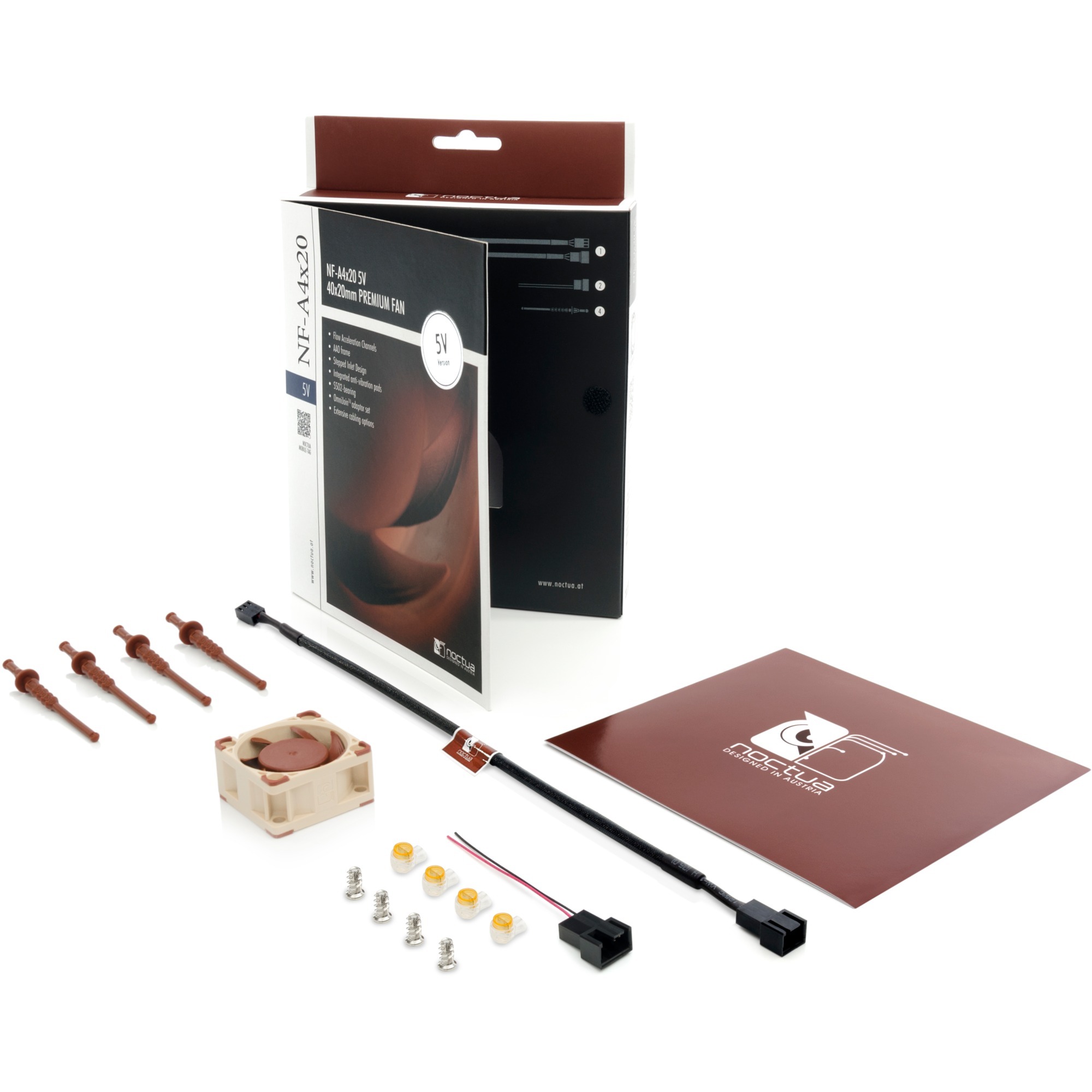 Le NF-A4x20 5V est une version 5V spéciale du ventilateur 40x20mm optimisé et silencieux de Noctua qui utilise le système de cadre AAO et des caractéristiques de conception aérodynamique avancées telles que les canaux d’accélération du flux. La technologie Smooth Commutation Drive et le roulement de référence SSO2 assurent une fluidité exceptionnelle et une excellente stabilité à long terme. Le câblage modulaire et le kit adaptateur OmniJoin font du NF-A4x20 5V une solution haut de gamme pour les applications 5V exigeantes.