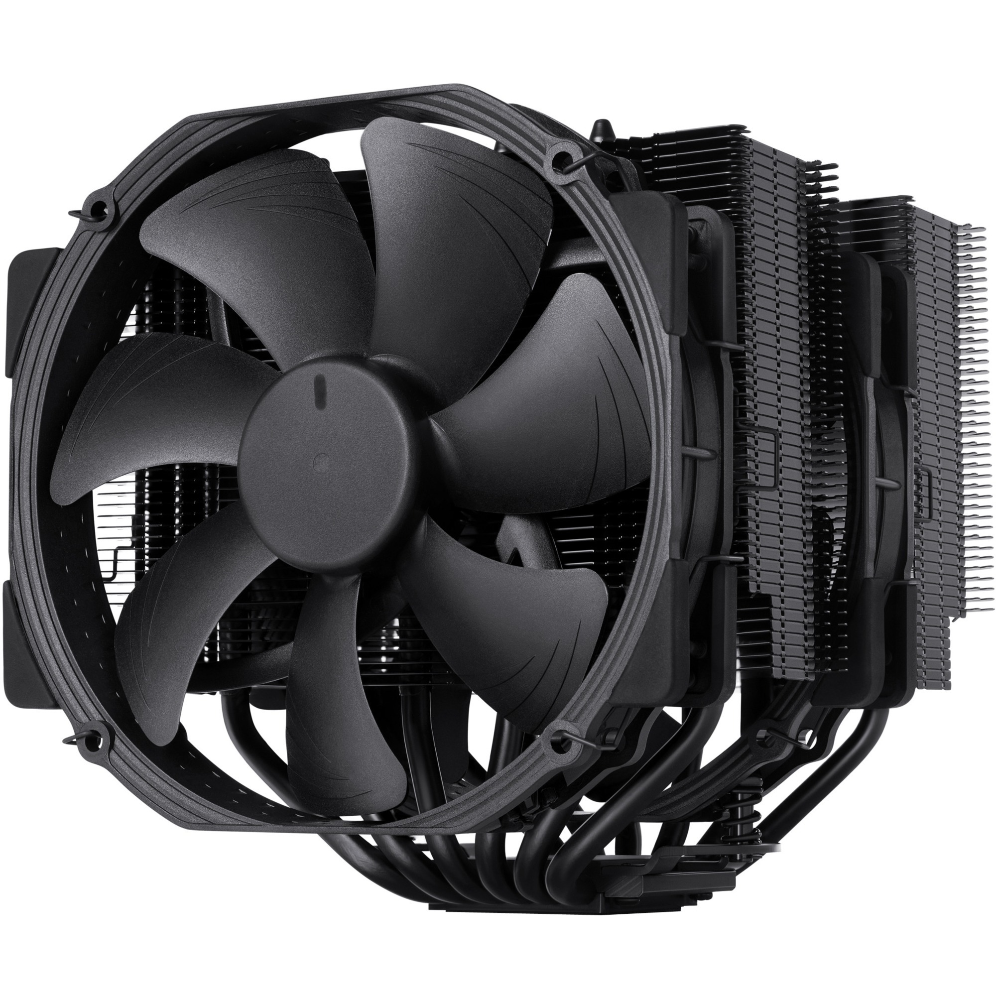 Le NH-D15 chromax.black est une version « noir intégral » du célèbre ventirad haut de gamme silencieux pour CPU et modèle amiral Noctua : le NH-D15. Grâce au design éprouvé à double tour et à l’intégration des ventilateurs NF-A15 PWM, ce modèle conserve le niveau d’excellence du NH-D15 et peut ainsi rivaliser avec les systèmes de refroidissement à eau all-in-one tout en offrant un niveau de silence exceptionnel. La version chromax.black offre un look d’une élégance et d’une sobriété rares grâce au revêtement noir du radiateur et aux ventilateurs noirs eux aussi.