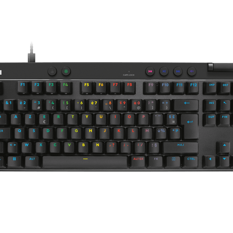 Ce périphérique bénéficie d’un éclairage RVB LIGHTSYNC personnalisable et de profils à bord pour enregistrer vos préférences. Les keycaps sont en matériau double-shot PBT, réputé pour sa résistance à l’usure et son toucher durable. La réactivité est au cœur de sa conception avec un polling rate de 1000 Hz et un temps de réponse de 1 ms, couplé à une anti-ghosting NKRO pour éviter les conflits de touches lors des sessions de jeu intenses.