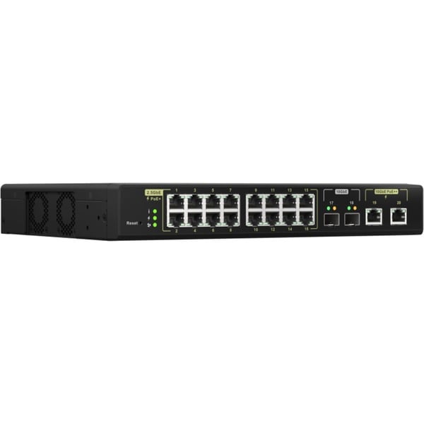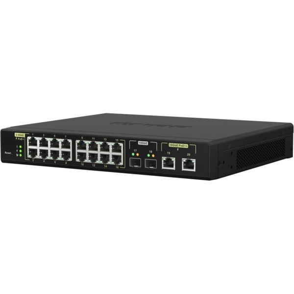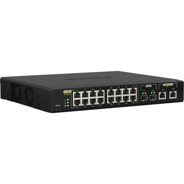 Le QNAP QSW-M2116P-2T2S est un switch administrable L2 PoE doté de seize ports 2,5GbE PoE+ de 30 Watts et de deux ports 10GbE PoE++ de 90 Watts. Avec un budget de puissance total de 280 Watts et deux ports SFP+ 10Gb