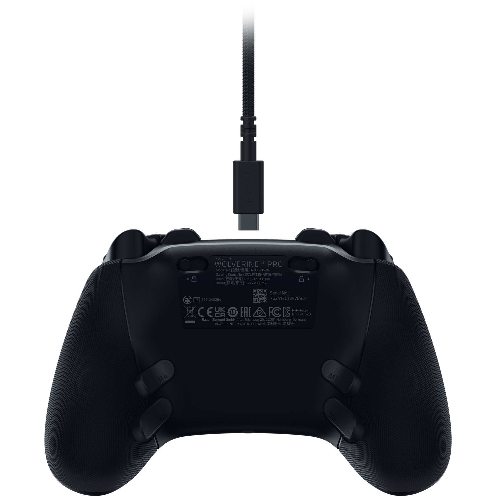 La Razer Wolverine V3 Pro est une manette de sport électronique sans fil pour Xbox et PC. Elle offre le même déclenchement ultra-rapide que les meilleures souris de jeu – quatre palettes Mouse Click Back dédiées sont intégrées dans les poignées ergonomiques et caoutchoutées de la manette, complétées par deux Claw Grip Bumpers pour encore plus de contrôle. Les vibrations haptiques intégrées vous permettent de profiter d’une action immersive et de ressentir chaque gâchette du Razer Pro HyperTrigger. Les sticks analogiques sont non seulement plus précis que les modèles conventionnels, mais aussi plus fluides, plus légers et plus robustes grâce à des anneaux sans friction et des matériaux professionnels. Vous pouvez les personnaliser en fonction de votre style de jeu, car deux paires de capuchons différents sont incluses. Les boutons d’action Razer Mecha-Tactile du Wolverine V3 Pro et la barre transversale 8 voies « flottante » offrent une activation ultra-rapide avec un retour tactile. L’application Razer Controller App vous permet d’ajuster la sensibilité des sticks et de créer vos propres configurations de boutons, afin d’être toujours prêt pour n’importe quel type de tournoi. Pour les jeux PC câblés, vous pouvez également activer un mode tournoi spécial avec une fréquence de 1000 Hz à l’aide de l’application Razer Controller qui l’accompagne.