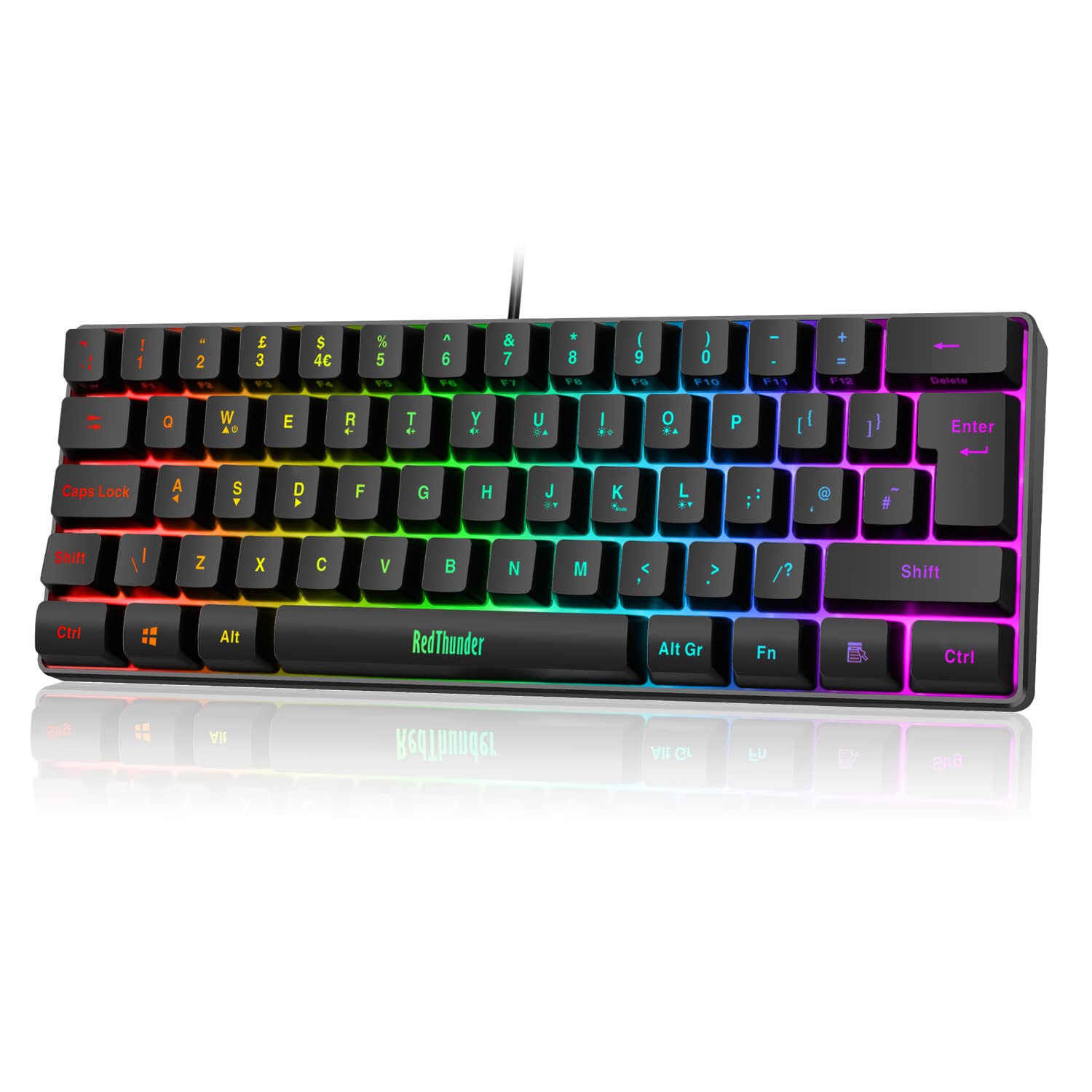 Le REDTHUNDER 60% Mini se présente comme un clavier gaming filaire conçu pour les utilisateurs souhaitant optimiser l’espace sur leur bureau. Grâce à son format compact de 60% et ses 61 touches, il libère une surface significative pour les mouvements de votre souris. Sa structure affiche des dimensions de 295 × 105 × 35 mm pour un poids de 500 g, ce qui en fait un périphérique facile à transporter pour vos sessions nomades.