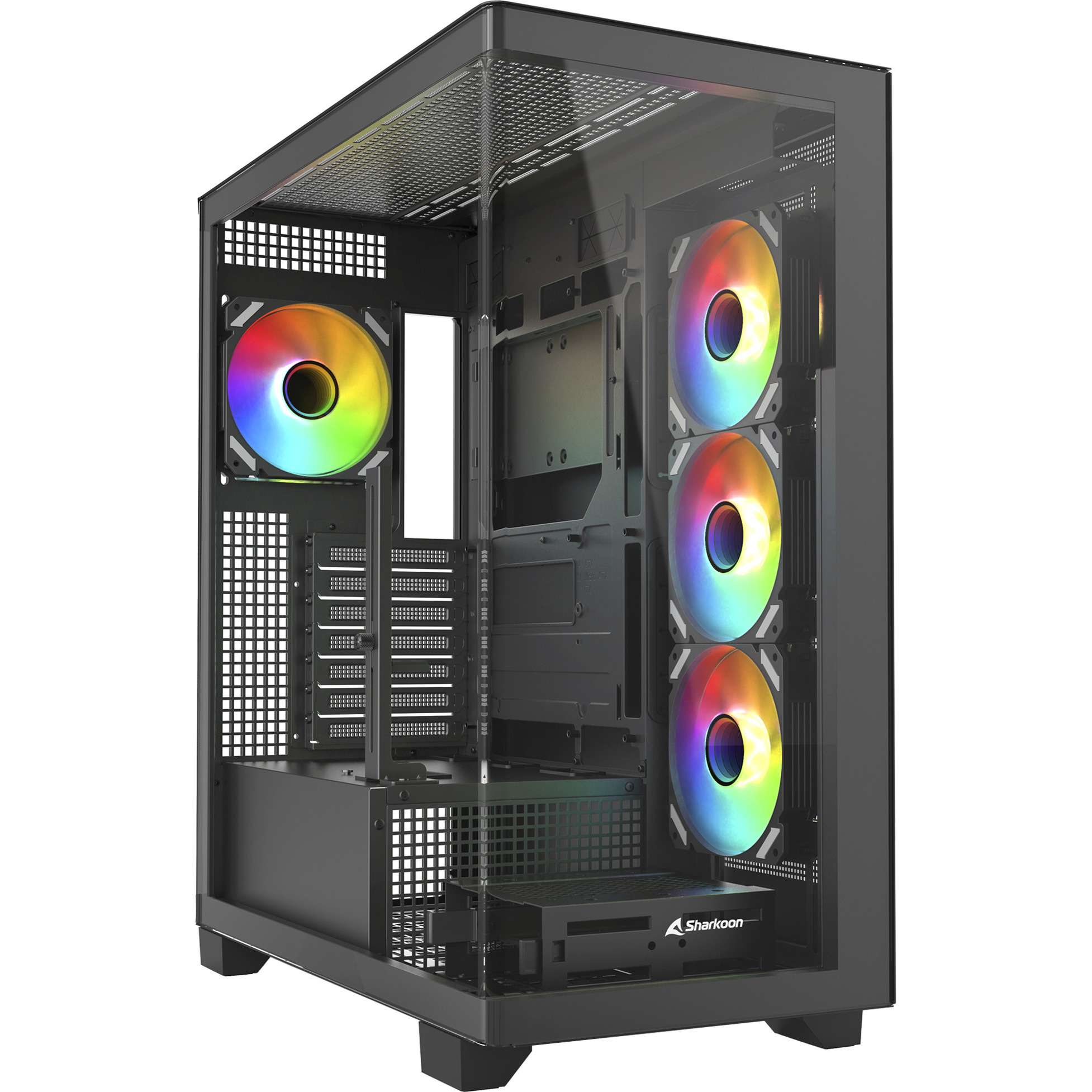 Le Sharkoon ELITE SHARK CA500 s’impose comme un boîtier midi tower ambitieux, pensé pour les configurations haut de gamme et les amateurs de composants visibles. Avec sa façade et son panneau latéral en verre trempé, il offre une vue panoramique sur votre configuration, tout en reposant sur une structure solide en acier. Son volume généreux de 57 l et ses dimensions de 23,5 cm de largeur, 51,8 cm de hauteur et 46,7 cm de profondeur en font un châssis spacieux et structuré.