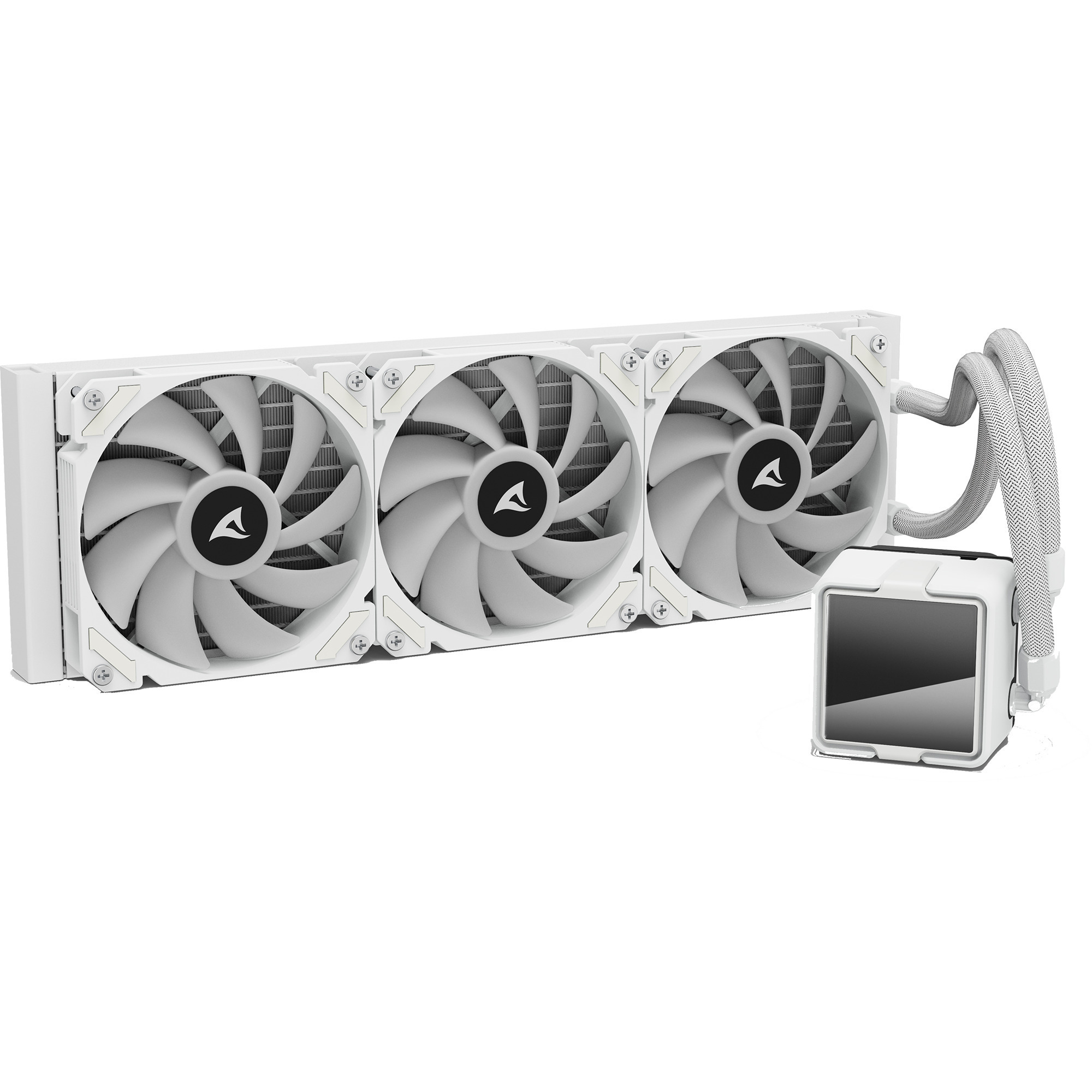 Le S60 ARGB blanc de Sharkoon est un puissant refroidisseur à eau tout-en-un avec un radiateur de 360 mm, qui combine un design moderne et des performances de refroidissement efficaces. Avec trois ventilateurs ARGB-PWM préinstallés, une tête de pompe remarquable avec effet miroir et une plaque en cuivre de haute qualité, il offre des performances élevées, une gestion optimale des câbles et une compatibilité étendue avec les cartes mères les plus courantes. Grâce aux connecteurs en série, les ventilateurs du S60 ARGB peuvent être facilement connectés entre eux. Cela réduit considérablement la quantité de câbles et garantit une configuration matérielle soignée et esthétique.