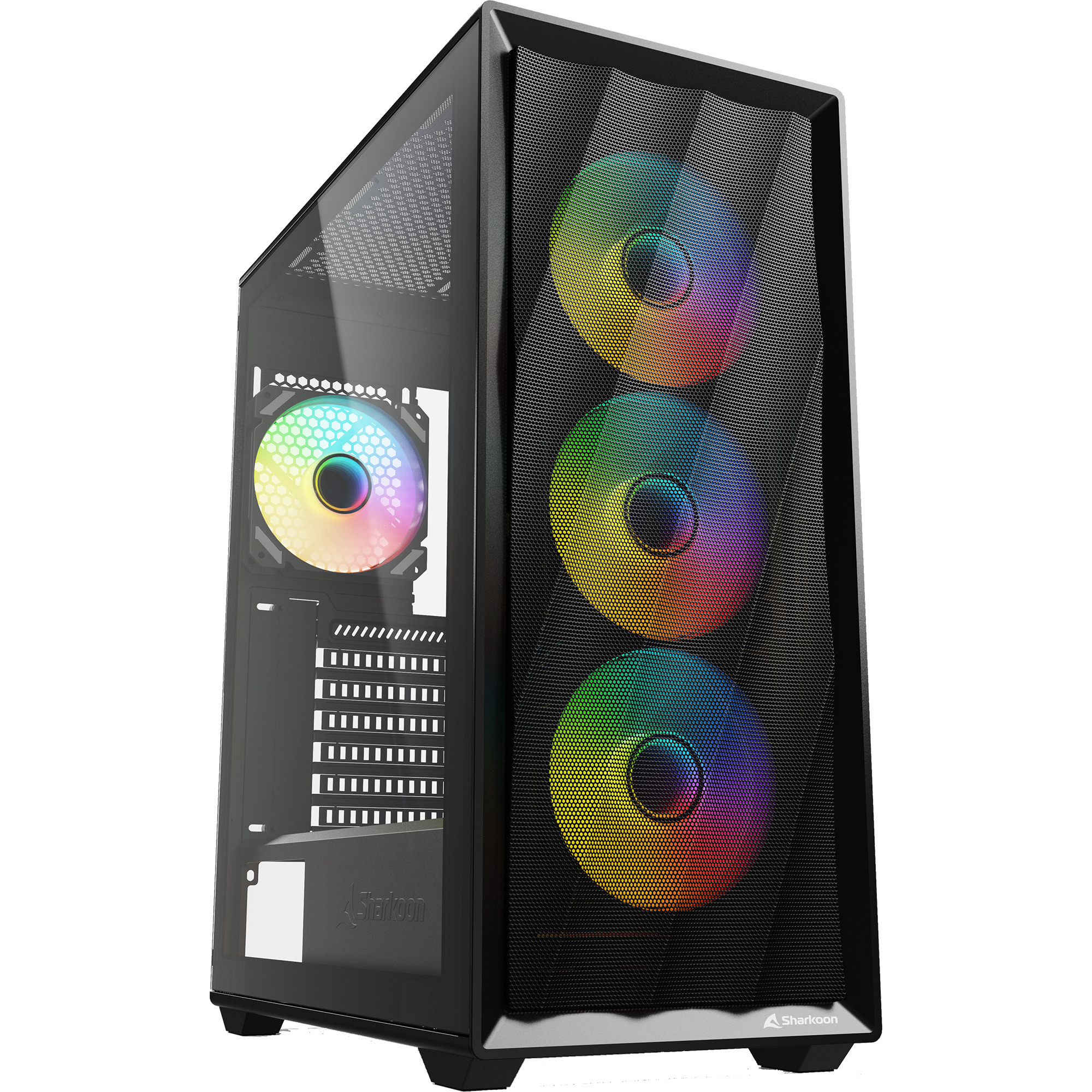 Le Sharkoon VK4 ARGB est un boîtier midi tower au format ATX pensé pour allier esthétique moderne et refroidissement efficace dès l’installation. Avec sa façade avant maillée et sa fenêtre latérale en verre trempé, il met en valeur votre configuration tout en favorisant un flux d’air optimisé. Sa structure en acier et son coloris noir lui confèrent un style sobre et polyvalent, adapté à de nombreux environnements, du setup gaming à la station de travail personnelle.