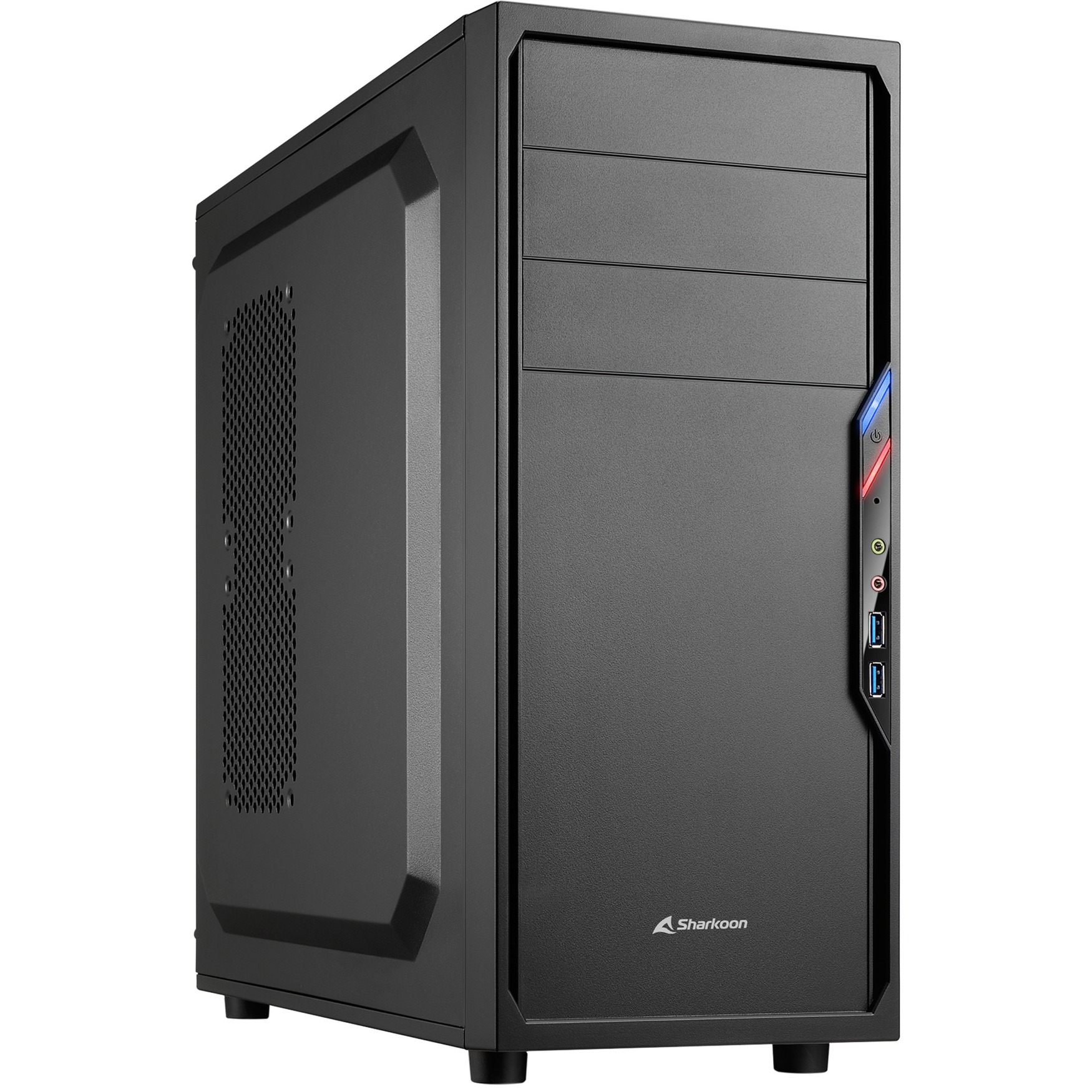 Le Sharkoon VS4-V est un boîtier Midi tower au format ATX pensé pour accueillir des configurations polyvalentes dans un châssis compact et fonctionnel. Proposé en noir avec une peinture intérieure noire, il affiche des dimensions maîtrisées de 20 cm de largeur, 43 cm de hauteur et 44,5 cm de profondeur, pour un volume de 38 l et un poids contenu de 3,5 kg. Il accepte les cartes mères ATX ainsi qu’une alimentation ATX jusqu’à 250 mm de longueur.