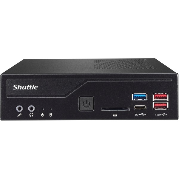 Boîtier de 1,35 litre, Deux ouvertures pour antivol Kensington et de nombreuses ouvertures filetées M3 des deux côtés du boîtier, Prend en charge les processeurs Intel Core i9 / i7 / i5 / i3, Pentium Gold et Celeron ; prend en charge les processeurs Intel Core de 12e génération portant le nom de code "Alder Lake-S" avec la technologie de processus "Intel 7" (anciennement : Intel 10 nm Enhanced SuperFin) ; ne prend en charge que les processeurs avec fonction graphique intégrée, Refroidissement du processeur par caloducs avec deux ventilateurs de 60 mm sur le dessus du boîtier, Carte mère au format Shuttle – conception spéciale pour le barebone XPC DH610, Refroidissement passif du chipset avec dissipateur thermique, Prend en charge la SDRAM DDR4-3200/2933/2666/2400/2133 (PC4-25600/23466/21300/19200/17000) à 1,2 V ; prend en charge le mode Dual-Channel ; prend en charge les modules DIMM non-buffered (pas de ECC ou registered), Les propriétés de la fonction graphique Intel UHD intégrée dépendent du type de processeur utilisé ; prend en charge les écrans 4K avec une résolution Ultra HD de 3840 x 2160 ; prend en charge trois écrans indépendants via la fonction graphique intégrée, 1x baie de lecteur 2,5" pour un disque dur ou un lecteur SSD avec connexion SATA ; hauteur de lecteur 12,5 mm (max.), L'emplacement M.2-2280M pour SSD offre les interfaces suivantes : PCI-Express Gen. 2.0 X4 prend en charge NVMe ou SATA v3.0 (max. 6 Gbit/s) ; les cartes M.2 utilisées doivent avoir une largeur de 22 mm et peuvent avoir une longueur de 42, 60 ou 80 mm (Type 2242, 2260, 2280) ; prend en charge les SSD M.2 avec interface SATA ou PCI-Express, L'emplacement M.2-2230E pour cartes WLAN avec interfaces PCI-Express Gen. 3.0 X1 et USB 2.0 ; les cartes M.2-2230 utilisées doivent avoir une largeur de 22 mm et une longueur de 30 mm (Type 2230) ; prend en charge les cartes d'extension WLAN (Accessoire Shuttle optionnel : WLN-M / WLN-M1)