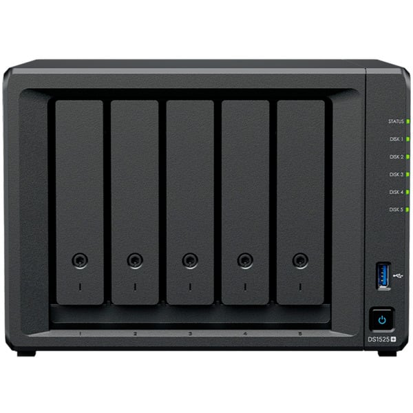 La DS1525+ intègre un réseau 2.5GbE avec option 10GbE⁴. Elle prend en charge les SSD et HDD SATA (2,5″/3,5″) ainsi que les disques M.2 NVMe via les emplacements M.2 pour un cache ultra-rapide. Consolidez vos données avec jusqu’à 100 To de stockage brut via 5 baies. Gérez vos documents, photos et autres fichiers, sauvegardez vos applications et appareils ou protégez vos biens avec une surveillance vidéo professionnelle.