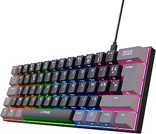 Optimise votre setup avec le Trust Gaming GXT 867 Acira 60% V2, un clavier mécanique AZERTY Français ultra-compact et performant. Son format 60% réduit considérablement l’encombrement sur votre bureau, libérant de l’espace pour vos mouvements de souris. Malgré sa taille, il ne sacrifie aucune fonctionnalité grâce à ses touches à double fonction, te donnant accès à toutes les commandes essentielles. Profite d’une réactivité mécanique exceptionnelle et d’un rétroéclairage RGB dynamique via USB, te permettant de personnaliser l’ambiance et d’optimiser votre expérience gaming. C’est la solution idéale pour un setup épuré et efficace.