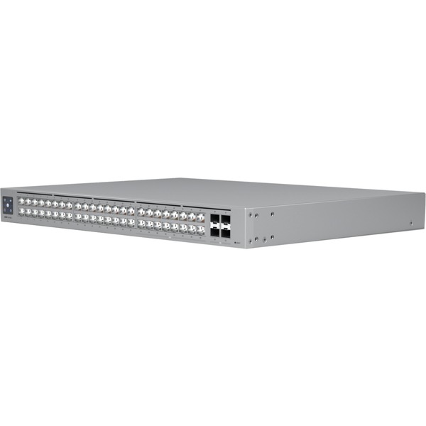 Le Ubiquiti UniFi Switch Pro Max 48 s’impose comme une solution de commutation de haute performance, conçue pour répondre aux exigences croissantes des infrastructures réseau modernes. Ce modèle administrable de niveau Layer 3 se distingue par sa polyvalence, offrant un total de 48 ports RJ-45 complétés par 4 emplacements 10G SFP+ pour les liaisons montantes à haute vitesse. Son format rackable 1U et ses dimensions de 442 mm par 44 mm avec une profondeur de 325 mm permettent une intégration standardisée et efficace dans vos baies de serveurs, tout en affichant un poids de 5,1 kg.
