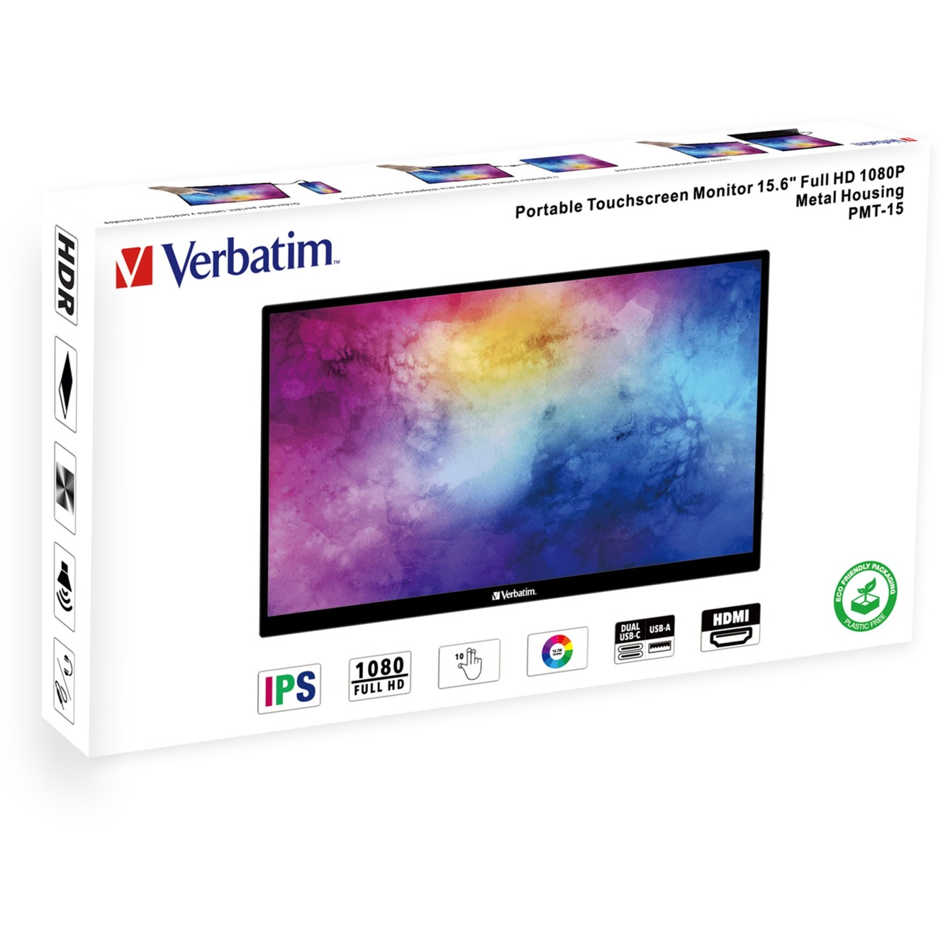 Le Verbatim PMT-15 est un moniteur portable à écran tactile avec une résolution FullHD (1920 x 1080 pixels). Avec un poids léger de seulement 1180 g et son profil latéral mince de 6 mm, il se glisse facilement dans n’importe quelle poche. Via USB Type-C ou HDMI, le PMT-15 peut être facilement connecté à un ordinateur portable, un téléphone portable ou une console portable pour une utilisation mobile idéale. Le PMT-15 est doté d’un boîtier en aluminium extrêmement robuste et prend en charge les écrans multi-touch capacitifs à 10 points dotés de la technologie GG.