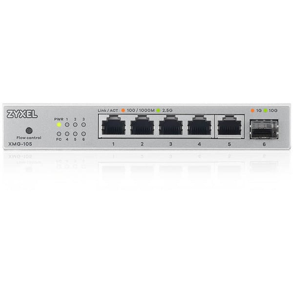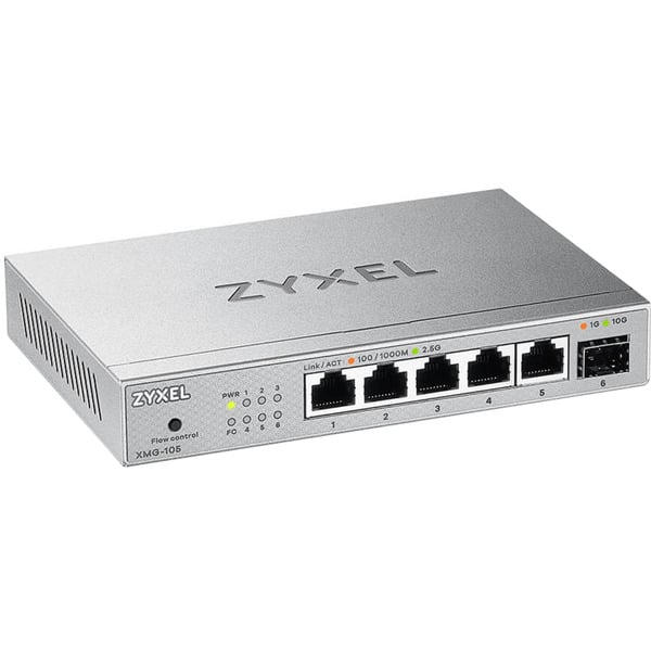 Le Zyxel XMG-105 Non-géré 2.5G Ethernet (100/1000/2500) Gris se présente comme une solution de choix pour faire évoluer votre réseau vers des débits supérieurs sans complexité technique. Ce switch non-géré (unmanaged) adopte un boîtier métallique robuste et compact, affichant des dimensions de 160 mm de largeur, 26 mm de hauteur et 110 mm de profondeur pour un poids de 451 g. Son design sobre lui permet de s’intégrer discrètement dans n’importe quel environnement de travail ou domestique.